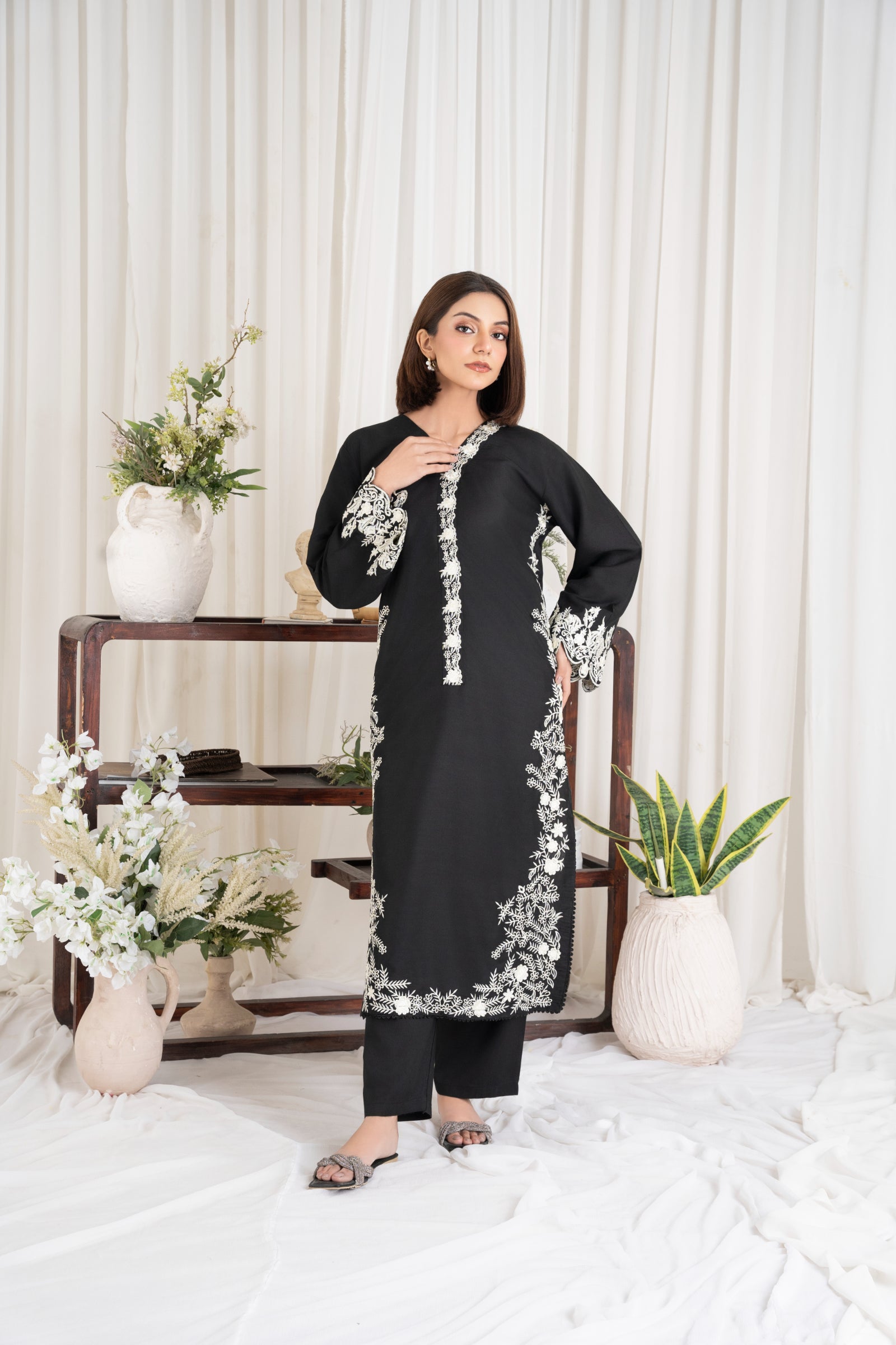Introducing the Black Eyed Embroidered Long-Length 2pcs, a stunning addition to your wardrobe. Crafted from premium cotton lawn, this stitched set offers both elegance and comfort. The intricate embroidery and fine stitching highlight the superior quality of the fabric, ensuring a sophisticated look. With a generous length of 46 inches, it provides a flattering and stylish silhouette. Priced at 3250/- with free shipping, this set combines luxury with value. Ideal for both casual and formal occasions, it’s a must-have for those who appreciate fine quality and craftsmanship.