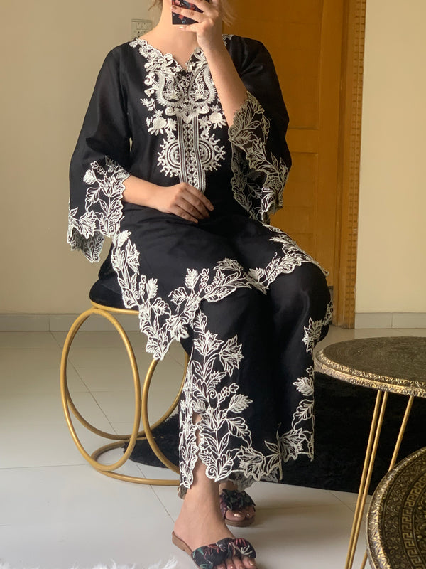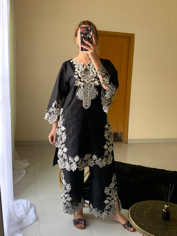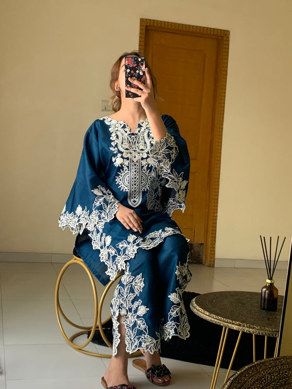 The Cyan Embroidered 2pcs set is not just a wardrobe addition but a statement of elegance and quality. With its eye-catching design and exceptional craftsmanship, it's a must-have for fashion enthusiasts looking to elevate their summer style. Enjoy the luxury of free shipping and make a bold fashion statement with Chaudary Arts. Order now and step out in style with this exquisite embroidered set.