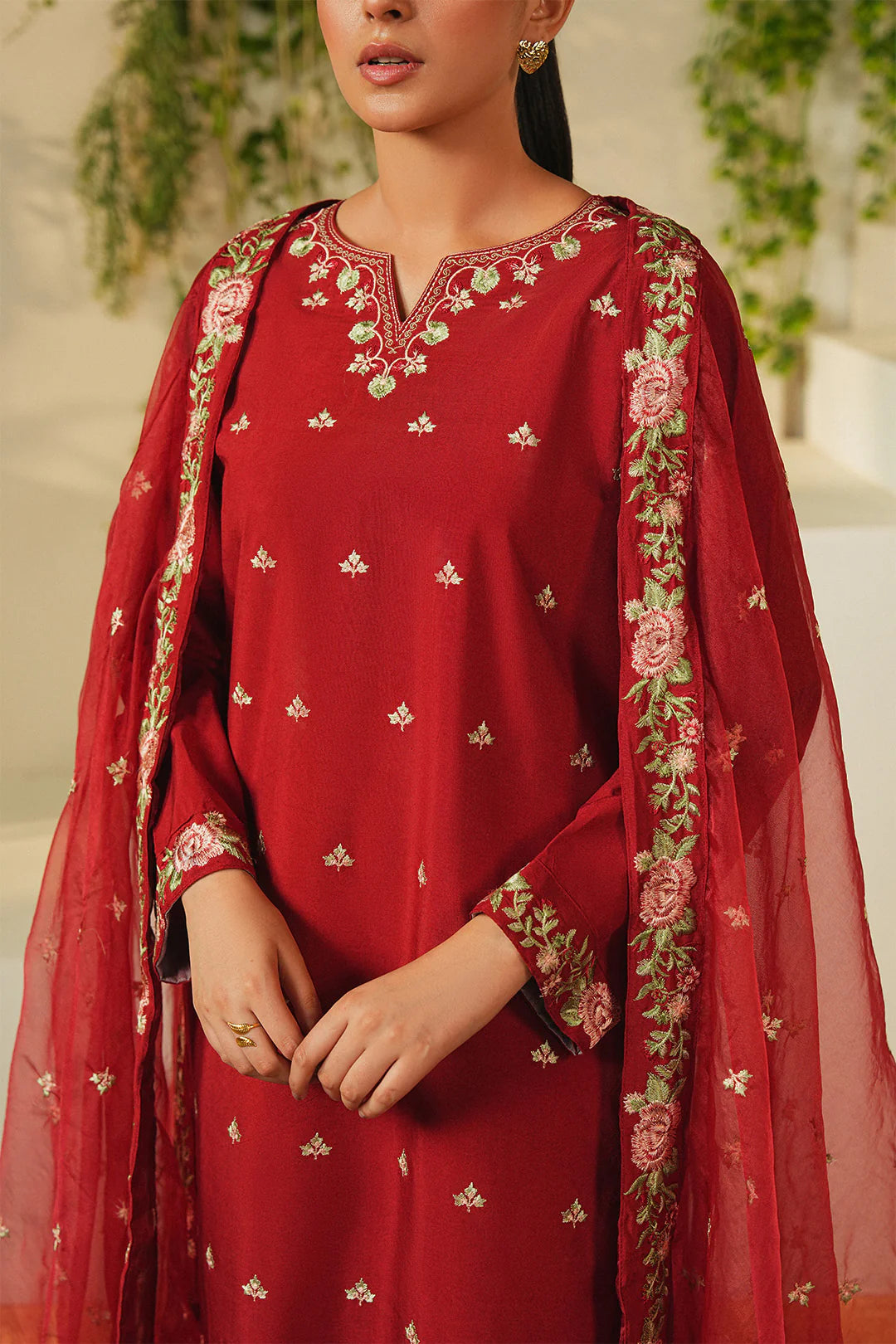 A vibrant red 3-piece dress made from high-quality linen fabric. The set includes a beautifully designed shirt, matching trouser, and a soft dupatta, offering a perfect blend of comfort and sophistication. Ideal for festive gatherings or everyday elegance, this outfit adds a bold and graceful touch to your wardrobe.