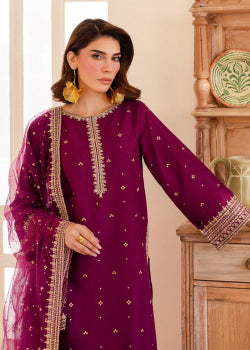 Additional Description: This exquisite Daily/Basic Wear Kurta Set in Plum Purple is the perfect choice for your summer wardrobe. Made of lightweight cotton, the long kurta features intricate embroidery, while the straight trouser ensures a comfortable fit. The set includes a matching organza dupatta for a complete look. Elevate your style with this stunning ensemble from Rangzar Studio.