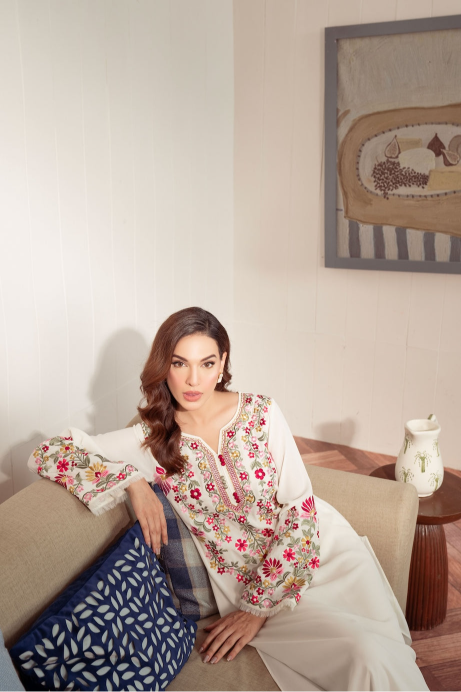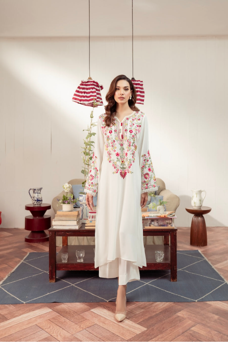 Turn heads with this exquisite white dress, beautifully adorned with delicate multicolor embroidery on the shirt and sleeves. Made with high-quality fabric for a comfortable yet sophisticated look, this outfit is perfect for festive occasions, casual outings, or special gatherings.